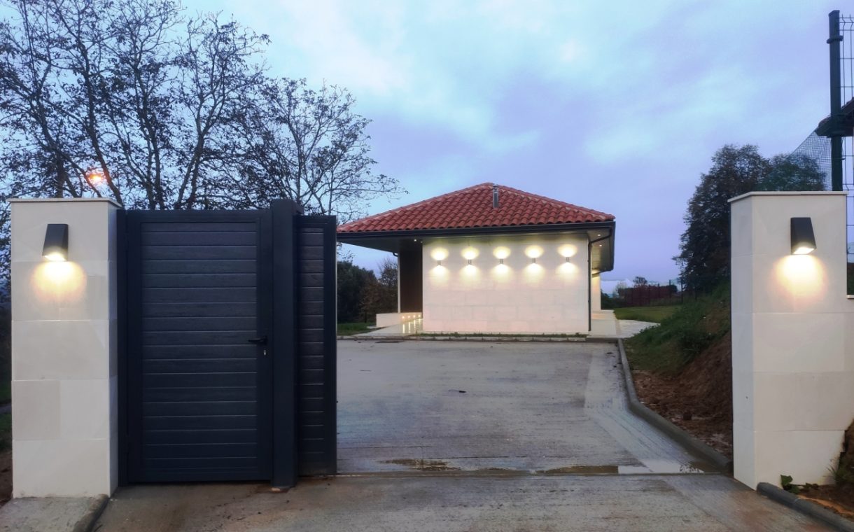 La construcción se muestra discreta y privada desde el acceso para abrirse a la parcela en su fachada sur.