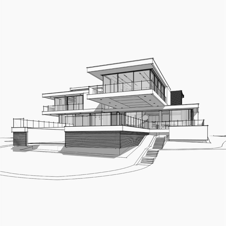 Diseñamos su casa a partir de sus gustos y de sus indicaciones. Preparamos bocetos previos en los que se puede ver volúmenes, orientación respecto a sol y a la parcela. Calculamos un coste aproximado de la construcción…
